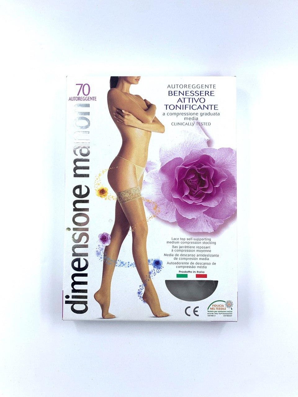 Autoreggente terapeutico con compressione graduata media. Modello da 70 den testato clinicamente. Un’ottima scelta per abbinare salute, benessere e sensualitu00e0.