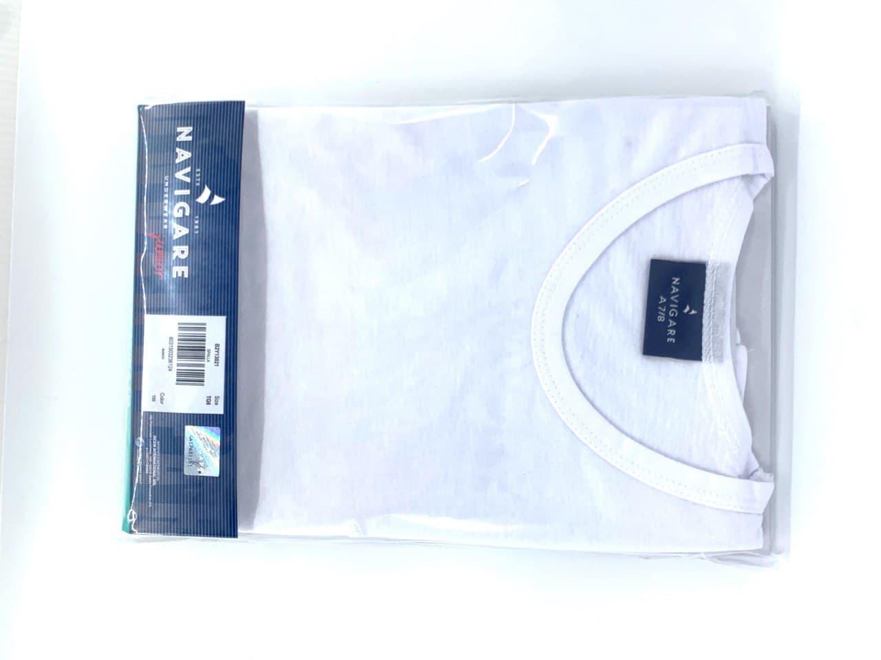 Canottiera a tinta unita bianca per bambino. Presenta ricamo del logo Navigare tono su tono e tessuto in delicato cotone pettinato.