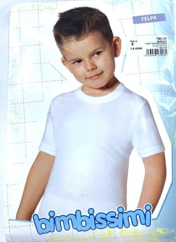 T-shirt intima per bambino a tinta unita bianca. Modello con maniche corte, girocollo e tessuto in caldo cotone. Perfetta per bambini di etu00e0 compresa tra i 2 e gli 16 anni.