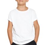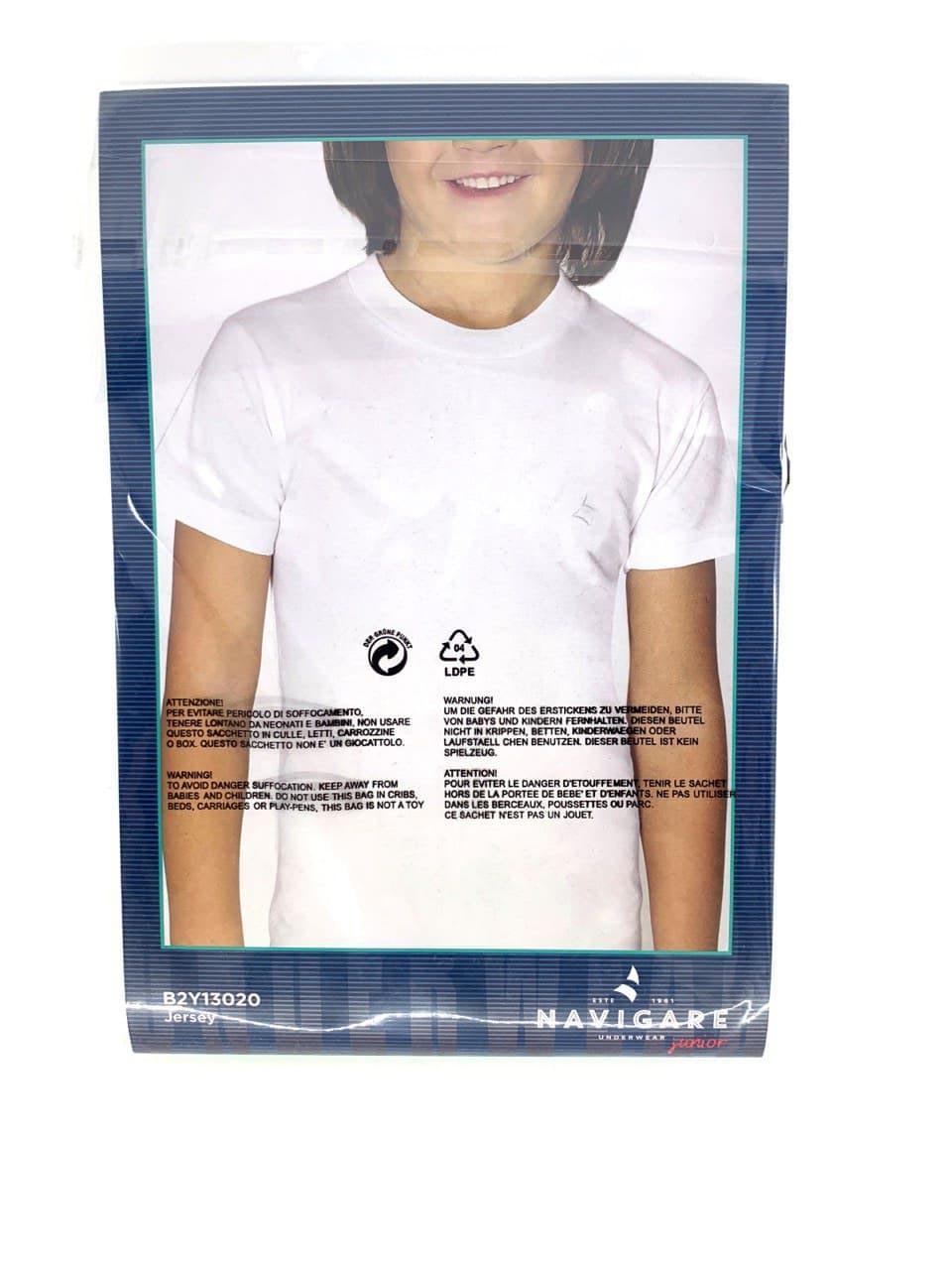 T-shirt intima per bambino a tinta unita bianca. Modello in cotone pettinato con logo ricamato in tono sul petto, girocollo e mezze maniche. Presenta le nuances a tinta unita blu navy, denim e grigio