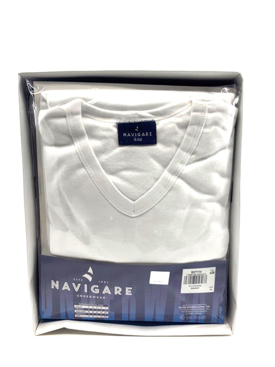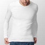 Maglia intima a tinta unita bianca. Modello a manica lunga con scollo a V e tessuto in cotone interlock. Caldo e funzionale.