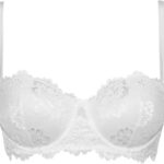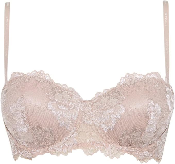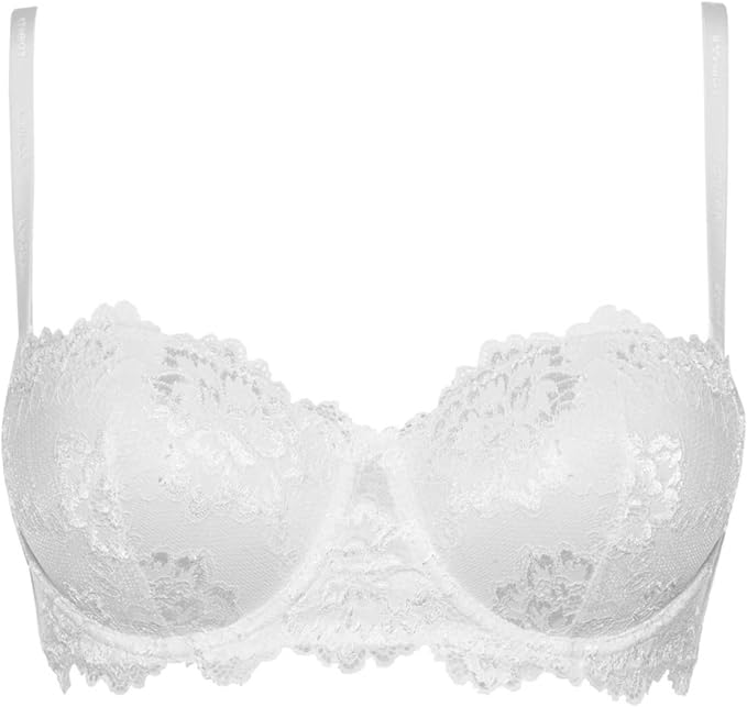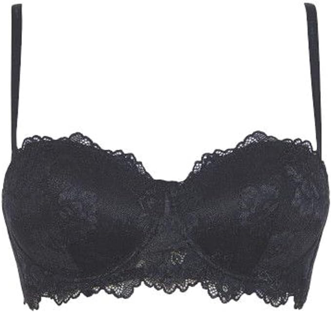 Reggiseno in pizzo con design a fascia e ferretto. Modello a tinta unita con coppe graduate e spalline staccabili. L’imbottitura push up regala una taglia in piu00f9 al seno. Disponibile nelle variabili di colore bianco, nero e nocciola.